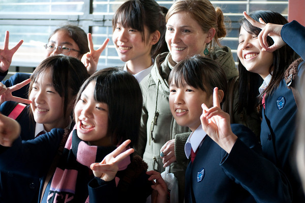 Các em nữ sinh nhờ chụp hộ tấm hình :
