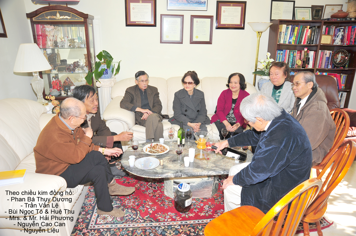 Trong số những khách quí này đều là những nhà thơ hửu danh ở hải ngoại. Nhà thơ Trần vấn Lệ, nhà thơ Hải Phương, nhà thơ Phan Bá Thụy Dương, nhà thơ Dzạ Chi, nhà thơ nữ Huệ Thu và phu quân Bùi Ngọc Tô, giáo sư Nguyễn Cao Can, nhà thơ Võ Thạnh Văn.