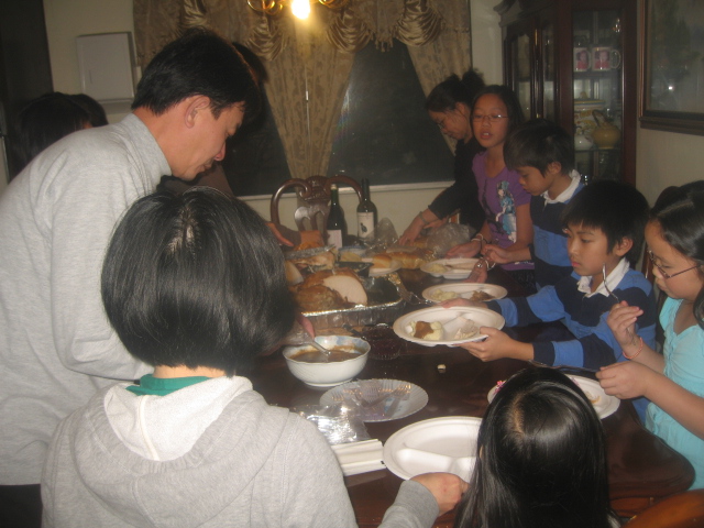 Bây giờ là chính tiệc Thanhsgiving trong gia đình. Sáu đứa cháu ngoại đầy đủ nhưng thiếu hai cháu nội.