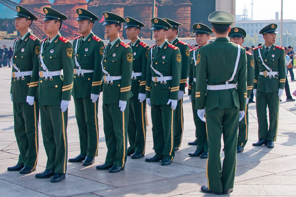 Nơi đây chánh quyền Tàu cộng hồi hộp lo sơ sự nổi dậy của sinh viên, cho nên nhiều đội cảnh sát sắp hàng đi đều, qua lại trong sân, như biễu dương sức đàn áp mạnh. Có lẽ các đội cảnh sát qua lại ngang dọc quảng trường 24 trên 24 vì các cuộc xuống đường của sinh viên, hàng triệu sinh viên ám ảnh mãi làm cho bộ chánh trị Tàu khủng khiếp. Nếu không có ông già Đặng tiểu Bình, ở tuổi gần đất xa trời làm ẩu cho xe tăng và đại liên chà nát đám biểu tình giết mấy nghìn sinh viên thì chánh quyền Tàu cộng xem như tiêu tùng rồi. Các đội cảnh sát đằng đằng sát khí đó hình như muốn nói với du khách rằng, nước Tàu cộng đầy đủ phương tiện, và thừa sự tàn nhẫn để đàn áp kẻ chống đối.
