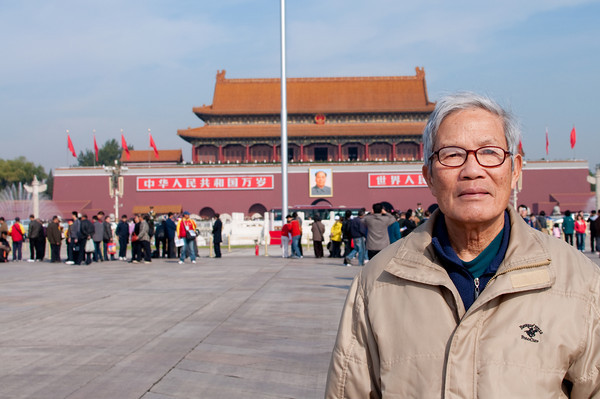 Tôi không ngờ từ Tokyo đến Seoul hơn một giờ bay, rồi từ đó đến Bắc kinh cũng cỡ trên một giờ bay. Gần quá. Hằng gì bọn hiếu chiến Bắc Hàn bắn hỏa tiển xuyên qua Nhật dễ dàng. Hotel tôi ở gần Quảng trường Thiên An Môn nên đến thăm nơi này trước. Ba chữ Thiên An môn hay quá, nhưng như có mùi máu phảng phất đâu đây. Du khách đến thật đông nhưng không biết trong đầu óc họ nghĩ gì, riêng tôi hình ảnh một người Tàu đứng cản trước xe tăng hiện lên rõ quá. Tôi lại nhớ đến thi sĩ Hà Thượng Nhân tiển đứa em gái yêu sang Trung quốc :