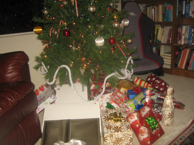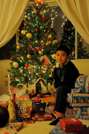 Quà Giáng sinh chất đầy dưới gốc thông, cây Noel, chất cả một góc phòng. Một người tới mấy gói quà, kiểu quà “ xa luân chiến”. Lửa lò sưởi cháy phực phực làm cho đêm giáng sinh sum họp đại gia đình ấm cúng vui vẻ.