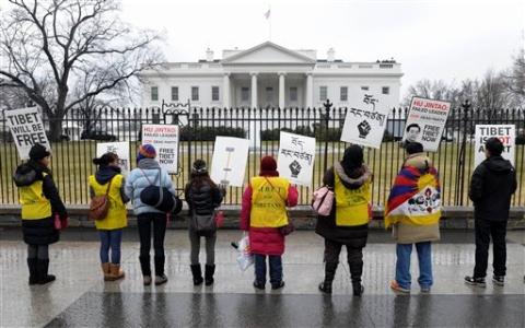 Các nhà hoạt động nhân quyền biểu tình bên ngoài Tòa Bạch Ốc, lên án thành tích nhân quyền của Trung Quốc, ngày 19/1/2011
