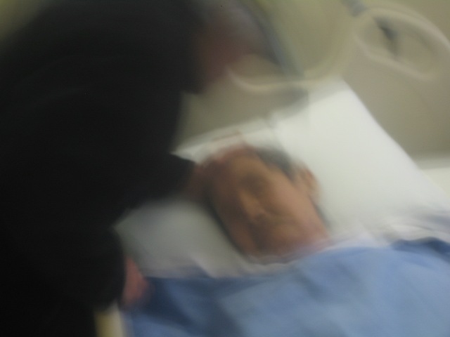 Huệ không ốm lắm, không ốm như mới hai tuần trước đây tôi ghé thăm, có vẻ hơi mập nằm im lặng thở nhè nhẹ. Tôi hỏi người con trưởng của Huệ