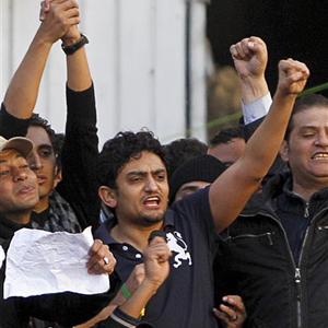 Wael Ghonim, 30 tuổi (giữa) đã đóng một vai trò quan trọng trong việc tổ chức 18 ngày biểu tình trên toàn quốc chống chính phủ đã buộc ông Mubarak phải từ chức và trao quyền cho quân đội sau hơn 30 năm giữ chức