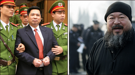 Cách báo chí chính thống của Trung Quốc và Việt Nam mô tả vụ bắt nghệ sỹ nổi tiếng Ngải Vị Vị và vụ xử tiến sỹ luật Cù Huy Hà Vũ cho thấy nhiều điểm tương đồng.