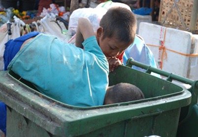 (Dân trí) – Chúng tôi gặp các em ở Khu kinh tế thương mại đặc biệt Lao Bảo. Cứ khoảng 3 lần một ngày, vào đầu buổi sáng, trưa và chiều muộn, các em lao vào những đống rác thải đổ giữa khu thương mại, bới tung rác để tìm nhặt những trái cây đã thối rữa…