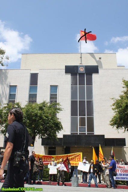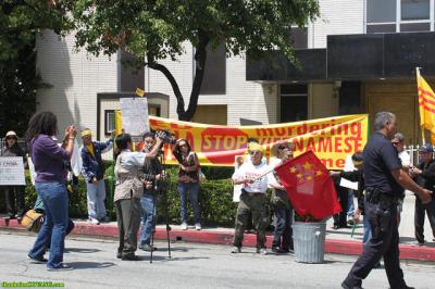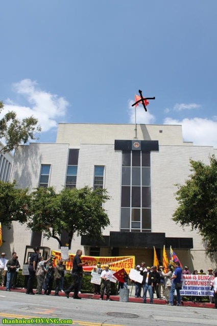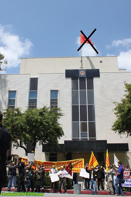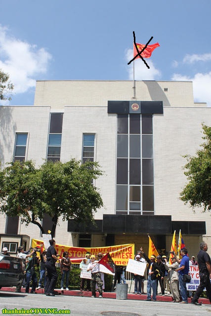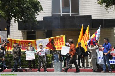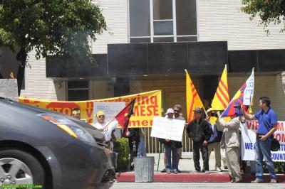 4-6-2011 Đốt cờ sao tại Lãnh sự quán tàu cộng ở Los Angeles, Cali yểm trợ quốc nội xuống đường 5-6