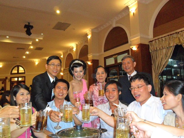 Bác gửi lời mừng đến ba má cháu và đến ba má vợ cháu.