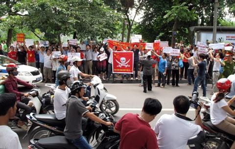 Người biểu tình đã tập họp trước đại sứ quán Trung Quốc và tuần hành qua những đường phố ở gần đấy đòi Bắc Kinh tránh ra khỏi phần lãnh thổ mà chính phủ Hà Nội kiên quyết nhận là thuộc chủ quyền của Việt Nam.
