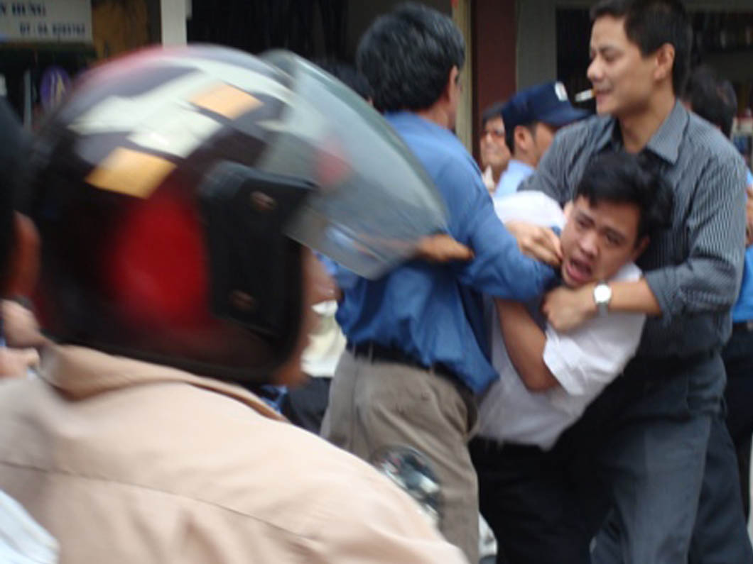 Dữ kiện 2: Tên Việt gian cũng là người khóa tay bóp cổ sinh viên Nguyễn Tiến Nam trước chợ Đồng Xuân Hà Nội vào ngày 29-4-2008, khi anh Nam tham gia biểu tình phản đối Trung Quốc nhân dịp đuốc Olympic Bắc Kinh được đón rước tại Việt Nam.