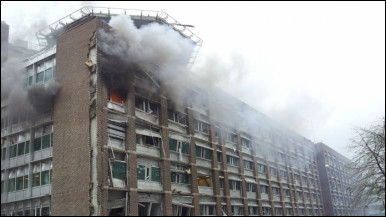 Theo AP cho biết trụ sở một số cơ quan báo báo chí ở gần đó cũng bị hư hại, khói bốc lên trên phố.