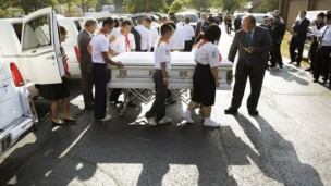Lễ tang cho các nạn nhân được tổ chức tại nhà thờ Thánh Tâm Ðức Mẹ ở Barling, gần Fort Smith.