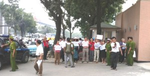 | Hình ảnh biểu tình trước trụ sở Đài Phát thanh và Truyền hình Hà Nội sáng 21.10.2011. Ảnh: Ba Sàm |