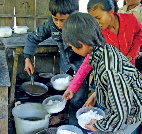 Giờ ăn ở ký túc xá Lồ Sử Thàng (Lào Cai) – Ảnh: Hoàng Điệp