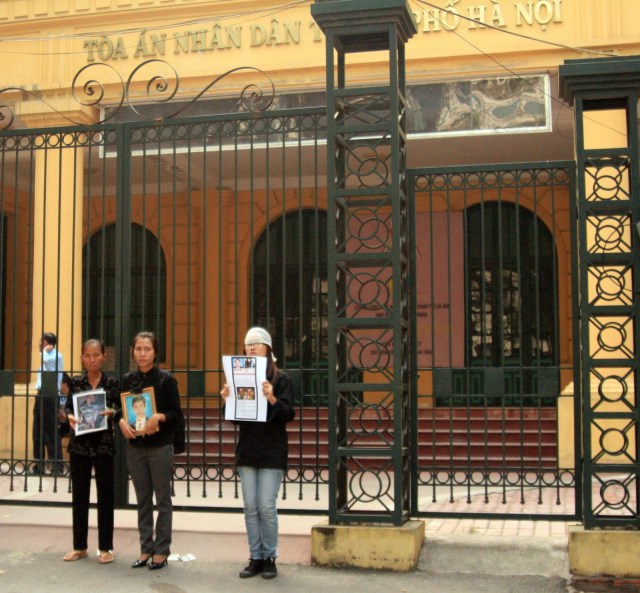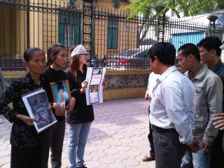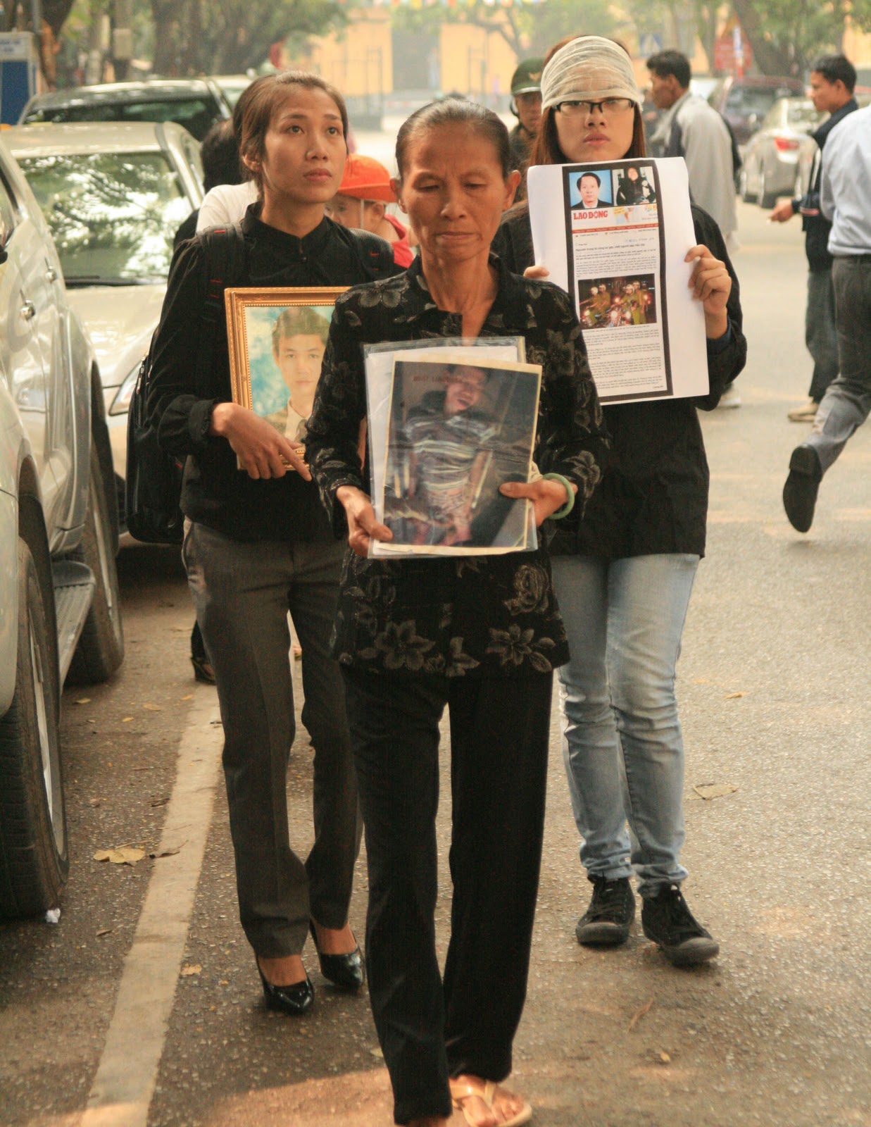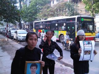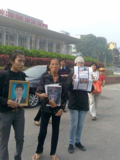 Sáng nay, Cô Trịnh Kim Tiến và Mẹ, Vợ của nạn nhân tên Nhật bị chết trong đồn công an (từ Bình Dương ra HN) đã vận đồ tang, đem theo di ảnh người thân đi đòi công lý. Đoàn người bắt đầu xuất phát từ trụ sở Bộ Công an trên đường Yết Kiêu, sau đó đi đến Viện Kiểm át Nhân dân tối cao rồi đến trước cửa Tòa án Nhân dân tp Hà Nội.
