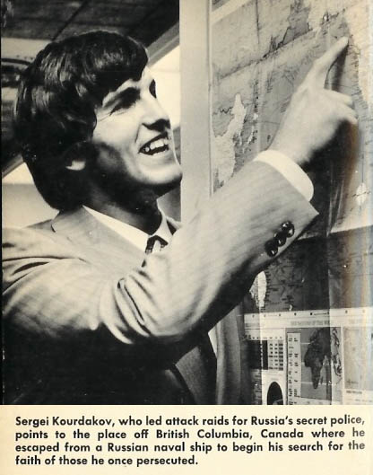 Trên đỉnh cao quyền lực bấy giờ là Brejenev. Ở một triền sóng nhỏ hơn, một thanh niên tuy còn ở xa Moscow nhưng có một giáng dấp rất giống vị cha già lông mày chổi xể là Sergie Kourdacop. Công việc thường xuyên của Sergie là nhận chỉ thị trưực tiếp từ Azarov, trưởng khối mật vụ tỉnh Kamchatka, trong đó cho biết ngày giờ, địa điểm mà nhóm tín đồ sẽ cầu nguyện.