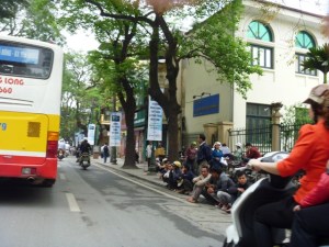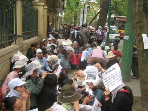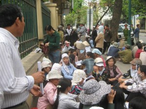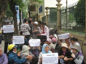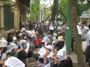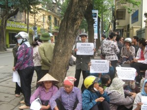 10h00: Sáng nay bà con thôn Hà Khê, xã Vân Hà, Đông Anh cũng có mặt ở 46 Tràng thi để khiếu kiện bị cưỡng chế đất cho mô hình khu công nghiệp nhỏ 8ha, không hiểu sảng kiến cải tiến của ông quan nào, chủ đầu tư là UBND huyện Đông Anh. Bà con khiếu nại về việc đền bù thu hồi đất, dùng công an , bộ đội tham gia cưỡng chế, ô nhiễm môi trường do đề án KCN nằm ngay canh làng thôn của bà con.