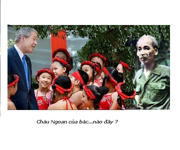 Bác nói : “Hôm nay là ngày vui mà Bác cháu chúng ta gặp nhau như vậy chúng ta lại hát bài Kết đoàn”. Bác vẫy tay bắt nhịp cùng chúng tôi, hội trường lúc này ngày càng tươi vui náo nhiệt. “Kết đoàn chúng ta là sức mạnh, kết đoàn chúng ta là sắt gang …”. Khi mà chúng tôi say sưa hát thì bác đi bóp vai những đứa con gaí, tới chổ tôi thì bác không những xoa lưng tôi mà bac còn để cho bàn tay đi xuống hai bờ mông của tôi xoa xoa bóp bóp làm cho tôi thâý rất là khó chịu, nhưng tôi không dám lên tiếng đành đứng yên chịu thôi. Trước mắt chúng tôi là bánh cức chó và kẹo bột cám ngào đường và nước chè xanh mà Bác cho dọn sẵn, Bác nói : “Mời các cháu cùng ăn với các bác cho vui”. Nói xong, Bác giới thiệu với chúng tôi : “Bác là Hồ Chí Minh, còn đây là bác Phạm Văn Đồng, người dưa cải đấy ! Và đây là bác Trường Chinh, bác Võ Nguyên Giáp, bác Lê Thanh Nghị, các bác ở Bộ Chính Trị hôm nay cũng có mặt với các cháu”. Bác đang nói thì thấy một ông già từ từ đi vào, miệng cười, vừa đi vừa vỗ tay, Bác Hồ giới thiệu luôn : “Đây là bác Tôn của các cháu”, cả phòng lại vỗ tay một lần nữa. Bác đi đến từng người trong chúng tôi và ôm hôn mỗi người một cái.
