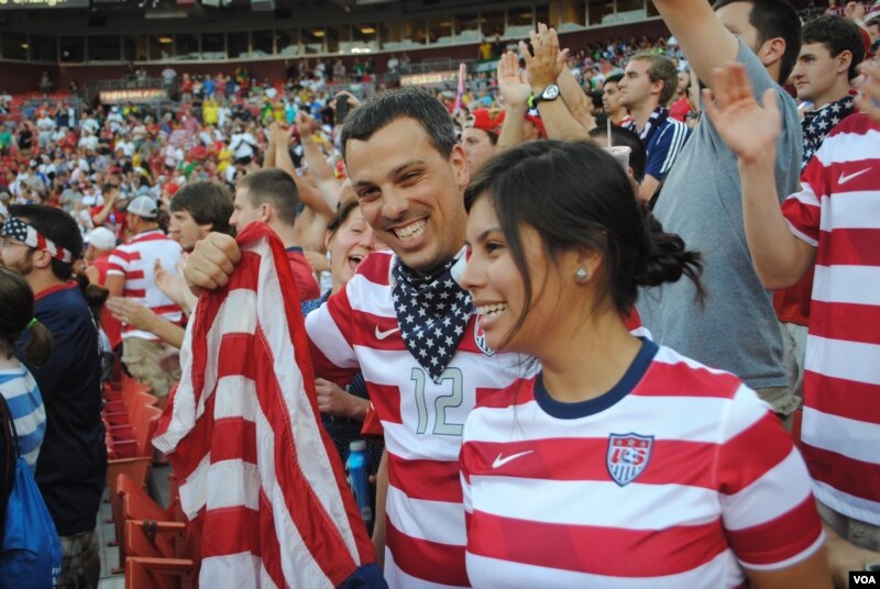 Người hâm mộ mặc trang phục mới của đội tuyển bóng đá nam của Mỹ đến chật sân FedExField cỗ vũ cho trận giao hữu Mỹ-Brazil, ngày 30 tháng 5, 2012