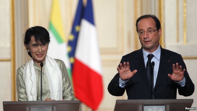 Tổng Thống Francois Hollande cho biết là theo lời miêu tả của Bà Aung San Suu Kyi thì Tổng Thống Miến Ðiện là một người thành thực, cam kết với phong trào dân chủ. Nếu ông muốn thực hiện dân chủ, thì dân chủ sẽ được thực hiện.