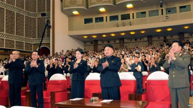 Người phụ nữ bí ẩn lần đầu được thấy ngồi cạnh ông Kim khi xem một buổi trình diễn được phát sóng trên truyền hình nhà nước hôm thứ Bảy.