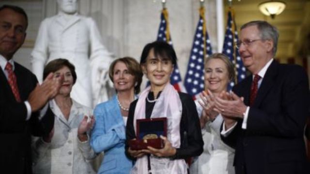 Lãnh tụ dân chủ Miến Điện Aung San Suu Kyi đã nhận Huân Chương Vàng Quốc hội Hoa Kỳ trong một buổi lễ tại Điện Capitol hôm thứ Tư.