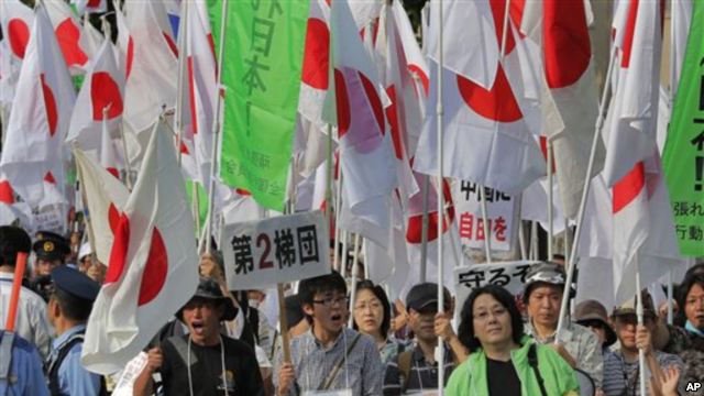 Hàng ngàn người Nhật biểu tình đã tuần hành ở Tokyo ngày hôm nay để phản đối việc Trung Quốc đòi chủ quyền đối với một quần đảo có tranh chấp ở Biển Đông Trung Hoa.