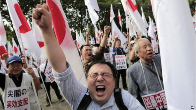 Giáo sư Thời Ân Hoằng của Đại học Nhân dân ở Bắc Kinh nói rằng dân chúng Trung Quốc cảm thấy tức giận vì họ nghĩ là Washington xúi giục để Tokyo có thái độ hung hãn hơn với Bắc Kinh: