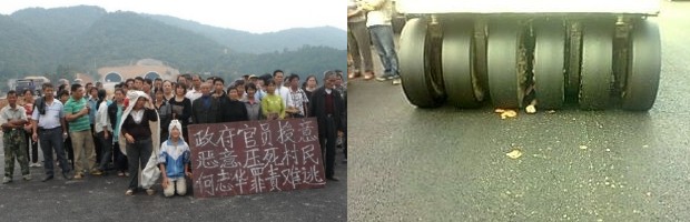 Nông dân ở bắc Trung Quốc chống lại sự tái định cư của nhà cầm quyền bằng cách không rời khỏi đất của mình, một nông dân đã bị xe làm đường tuân lệnh cấp trên cán nát thây phọt óc tại chổ.