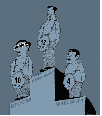 Cái đám “công chức” của “Nhà Nước Pháp Quyền CHXHCNVN” đã phản ứng điên dại bằng cách tuyên án mấy chục năm tù và hàng chục năm quản chế cho ba bloggers:Tạ Phong Tần, Nguyễn Văn Hải, và Phan Thanh Hải. Đây là bản án khắc nghiệt dành cho chính chế độ hiện hành, chứ không phải cho nghĩa muội của tôi, và hai người bạn đồng hành.