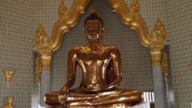 Theo như lời Vũ nói thì ngôi chùa mà chúng tôi đến, Chùa Phật Vàng (The Golden Buddha) là một trong những ngôi chùa nổi tiếng nhất ở Bangkok. Ở đây có đặt một tượng Phật Vàng được cho là lớn nhất thế giới. Vì nó nặng đến gần 5.5 tấn. Và hoàn toàn được đúc bằng vàng ròng, vàng thật. Nếu chỉ tính riêng giá trị của tượng Phật này bằng vàng ròng thì nó được ước lượng lên đến hơn 250 triệu đô.