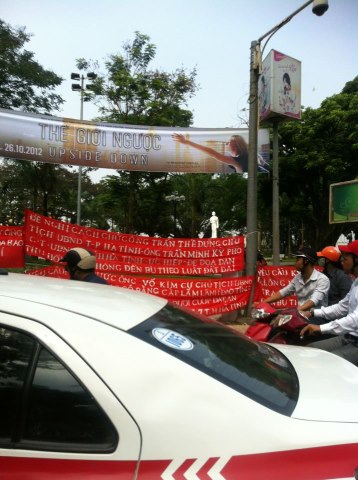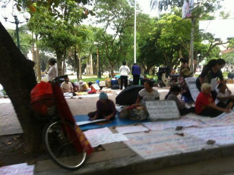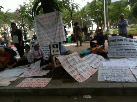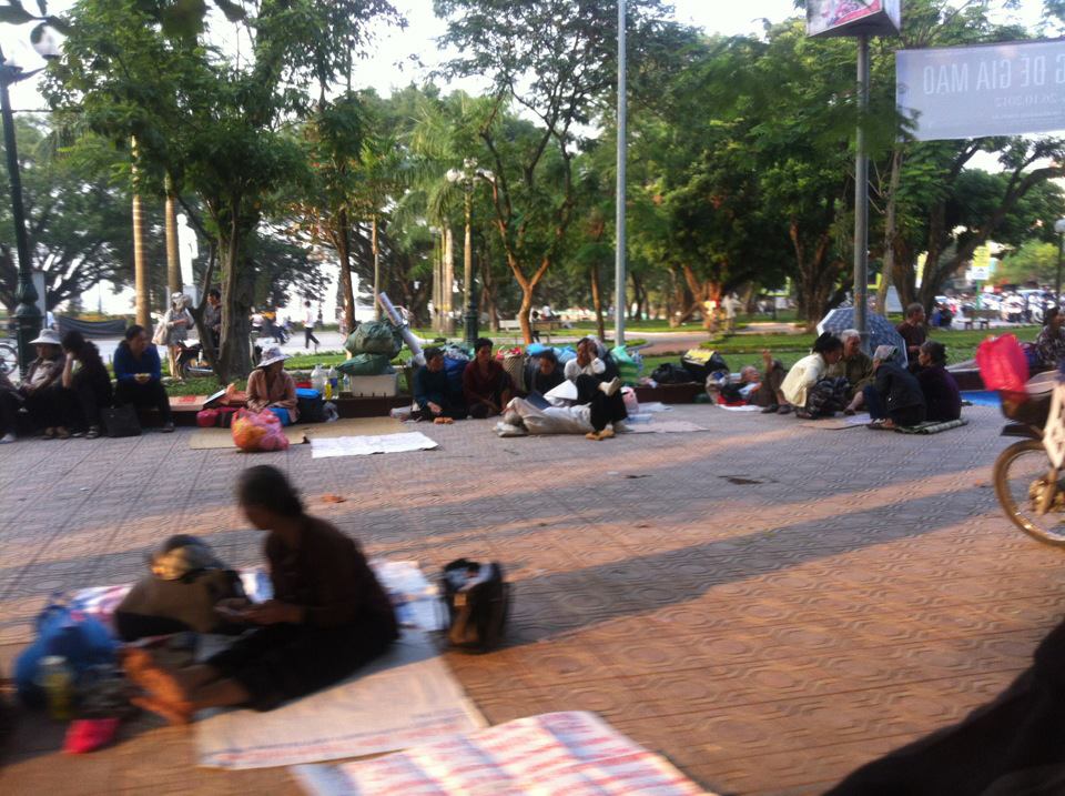 Dân oan bày đơn từ và khẩu hiệu tố cáo tham nhũng, khiếu kiện ra nằm.