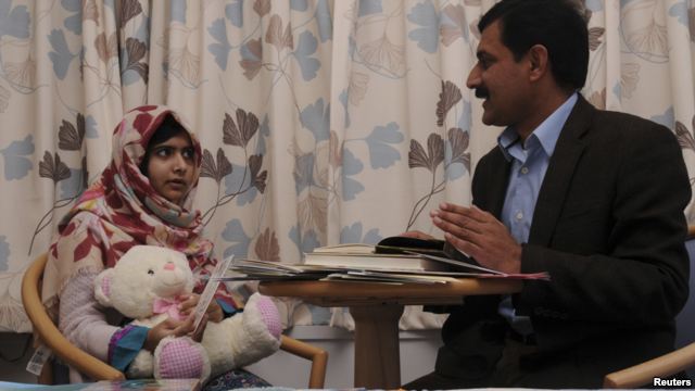Ông Ziauddin Yousafzai ngỏ lời hôm thứ Sáu từ bệnh viện Nữ hoàng Elizabeth ở thành phố Birmingham, nước Anh, nơi mà Malala, con gái ông, đang được điều trị về những vết thương trầm trọng sau khi bị bắn.
