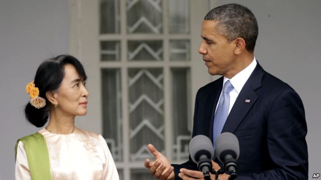 Tổng thống Obama nói ông đặc biệt muốn cảm tạ bà Aung San Suu Kyi đã tiếp ông ở nhà bà. Ðây là nơi mà qua bao nhiêu năm khó khăn bà đã chứng tỏ một sự can trường và lòng kiên quyết không lay chuyển được. Ðây là nơi bà đã chứng tỏ rằng quyền tự do và phẩm cách của con người không thể chối bỏ được.