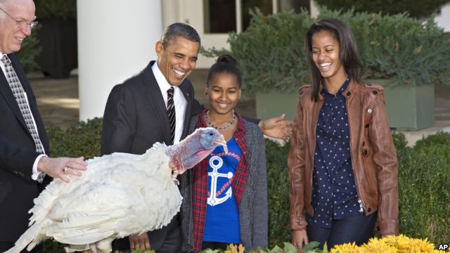 Phóng sinh gà tây ở Tòa Bạch Ốc là một tục lệ khai mạc không chính thức các buổi ăn mừng Lễ Tạ Ơn. Như ông Obama nói với khách mời và các phóng viên, dịp lễ này dành cho những lời bày tỏ lòng biết ơn.