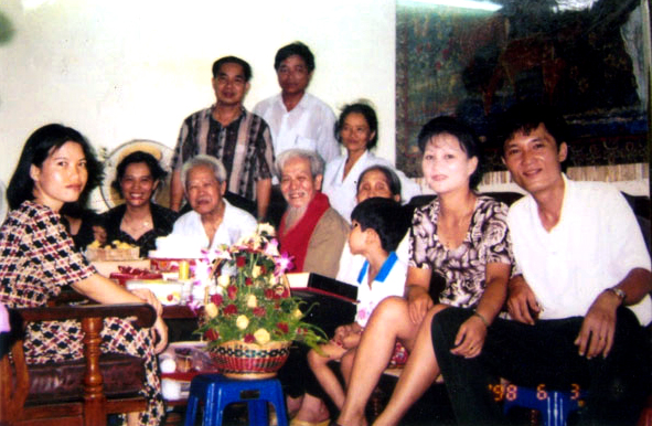 (bên phải) tại gia đình ông Vũ Kỳ vào năm 1998; người có râu trắng dài là ông Vũ Kỳ (giữa)