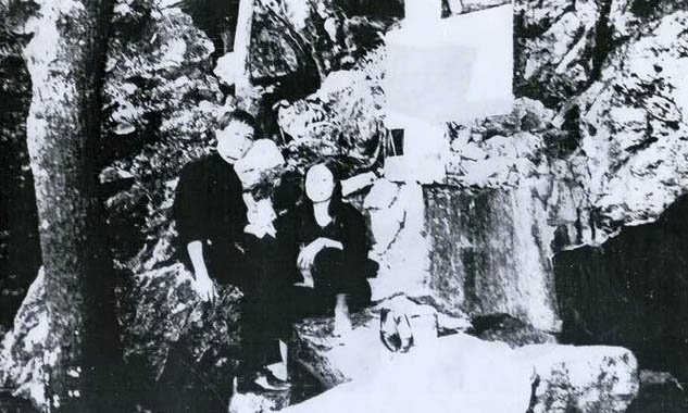 Hình ảnh vợ chồng Trung và Duyên bên dòng suối ở Hang Pắc Bó – Cao Bằng (suối Lê Nin)