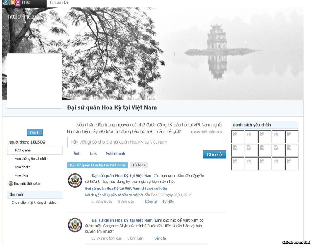 Tòa đại sứ Hoa Kỳ sử dụng tài khoản trên trang ZingMe để quảng bá các giá trị nước Mỹ, trong đó có việc tôn trọng quyền sở hữu trí tuệ.