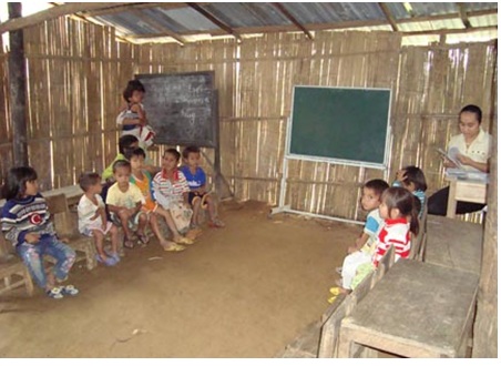 Lớp học của những em bé người Kor, mang họ bác Hồ, ở xã Tây Trà, huyện Trà Bồng. Em nào cũng chỉ có một ước vọng:”được ăn no bụng.” Ảnh: T. Huyền, chụp hôm 23 tháng 11 năm 2011.