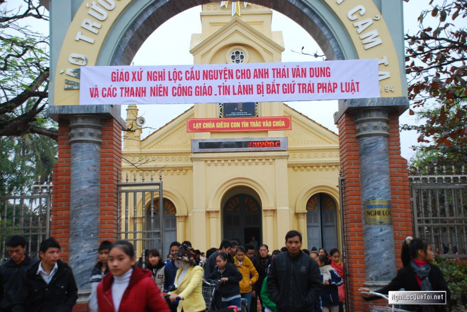 Thiên Khải Đường & BBT Giáo xứ Nghi Lộc – …Ngày lễ Chúa Hiển linh 06.01.2013, giáo xứ Nghi Lộc đã dâng thánh lễ và tổ chức buổi cầu nguyện cho anh JB Thái Văn Dung cùng các thanh niên Công giáo, Tin lành đang bị bắt giữ trái pháp luật. Tại xứ đạo quê nhà, anh Dung là một người nhiệt thành với công việc nhà Chúa. Đặc biệt các hoạt động của giới trẻ, học sinh, sinh viên. Với những việc anh làm, mọi người nhìn thấy nơi anh là một thanh niên năng nổ, luôn hy sinh nhiều cho lợi ích chung. Anh là người yêu chuộng sự thật, công lý và luôn lên tiếng để bảo vệ những lý tưởng đó. Tình yêu quê hương đất nước trở thành động lực để anh tham gia vào các hoạt động bảo vệ chủ quyền Tổ quốc tại Hoàng Sa, Trường Sa trước đây…