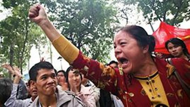 Xin mời các bạn xem bức ảnh của người phụ nữ ấy kèm theo đây. Đây là bức ảnh sống động của người phụ nữ đang thét vang: «Hoàng Sa, Trường Sa là của Việt Nam!»,«Đả đảo bọn bành trướng Trung Quốc!» ngay trước Sứ quán Trung Quốc ở thủ đô Hà Nội, năm 2007.