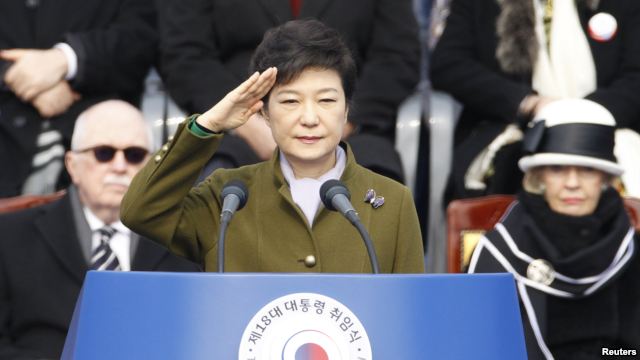 Trước một đám đông 70.000 người, bà Park Geun-hye, trong một chiếc áo choàng màu olive và một chiếc khăn quàng tím, đã tuyên thệ nhậm chức và trở thành vị tổng thống thứ 11 kể từ khi Nam Triều Tiên lập quốc vào năm 1948.