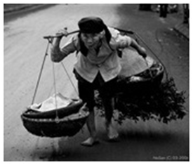 – Cụ Đình 91 tuổi. Bà đi bằng chân đất, trong khi cái rét mùa đông vẫn còn dùng dằng xói vào da thịt dù trời đã sang xuân, hỏi bà sao không đi giày cho ấm chân, bà bảo ”đi chân đất thôi, đi giày chân yếu ngã chúi mũi chết”. “Nhà cháu ngã mấy lần rồi, có hôm đi bán bị ngã đổ hết cả rau, đi chân đất tuy lạnh nhưng chắc chân”, bà kể…