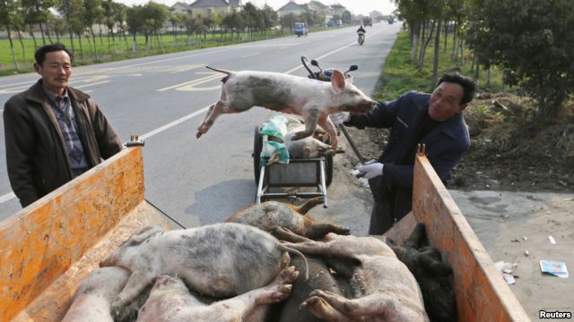 Giới hữu trách ở trung tâm tài chánh của Trung Quốc này cho biết những các dấu hiệu trên tai heo cho thấy số heo này được vất xuống sông từ tỉnh Triết Giang, nơi có nhiều trại heo lớn.