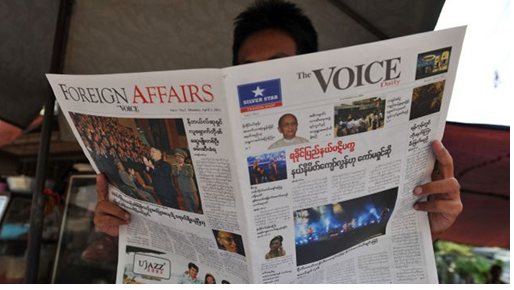 Độc giả đọc tờ The Voice – một trong bốn tờ báo tư nhân phát hành từ ngày 1-4-2013. Ảnh: AFP
