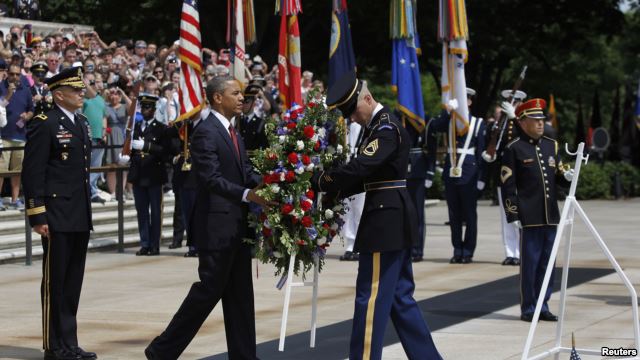 Tổng thống Hoa Kỳ Barack Obama đã đặt vòng hoa tại Nghĩa trang Quốc gia Arlington ở ngoại ô Washington, nơi các binh sĩ đã gắn lá cờ Mỹ nho nhỏ lên hơn 260.000 ngôi mộ.