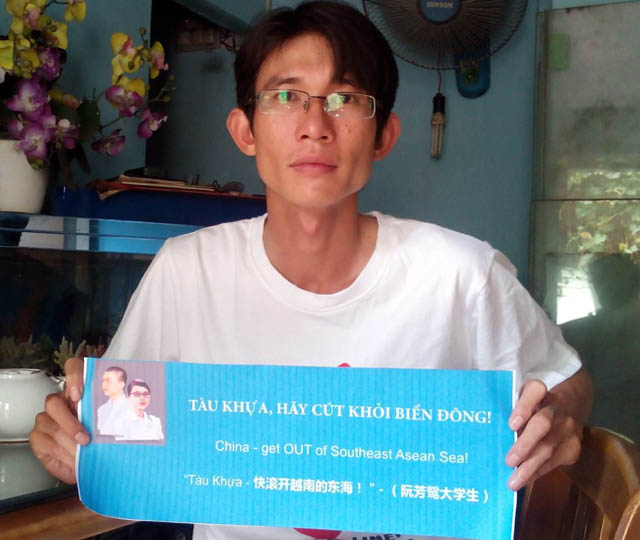 Biểu ngữ có nội dung ‘Tàu khựa cút khỏi Biển Đông’ cũng được tòa án CS xem là ‘tang vật’ nhằm bỏ tù 2 sinh viên yêu nước Đinh Nguyên Kha và Nguyễn Phương Uyên. Cáo trạng của Viện kiểm sát khẳng định đây là biểu ngữ ‘có nội dung không hay về Trung Quốc’