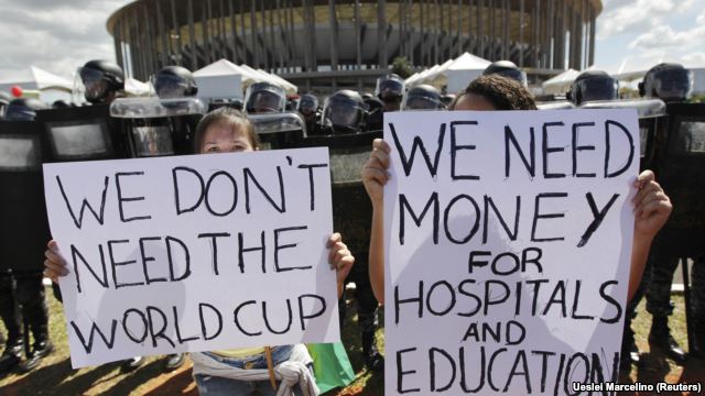 Các cuộc biểu tình còn nhắm vào hàng tỉ đôla đã được chi ra cho Thế vận hội Mùa Hè năm 2016, Giải World Cup năm tới, và Giải của Liên Đoàn Bóng Đá trong tháng này.