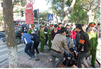 Phường Thụy Khuê, quận Tây Hồ (chắc chắn) đã nhiều lần đạt được “danh hiệu văn hoá” nên lực lượng quần chúng tự phát chỉ doạ là “có thể” ném “cứt đái” thôi, chứ chưa ném thật. Ở những địa phương khác thì sinh hoạt của đám người này (có phần) hơi kém lịch sự hơn chút xíu. Tam Kỳ, Quảng Nam là một nơi như thế, theo như tường trình của blogger Huỳnh Thục Vy: